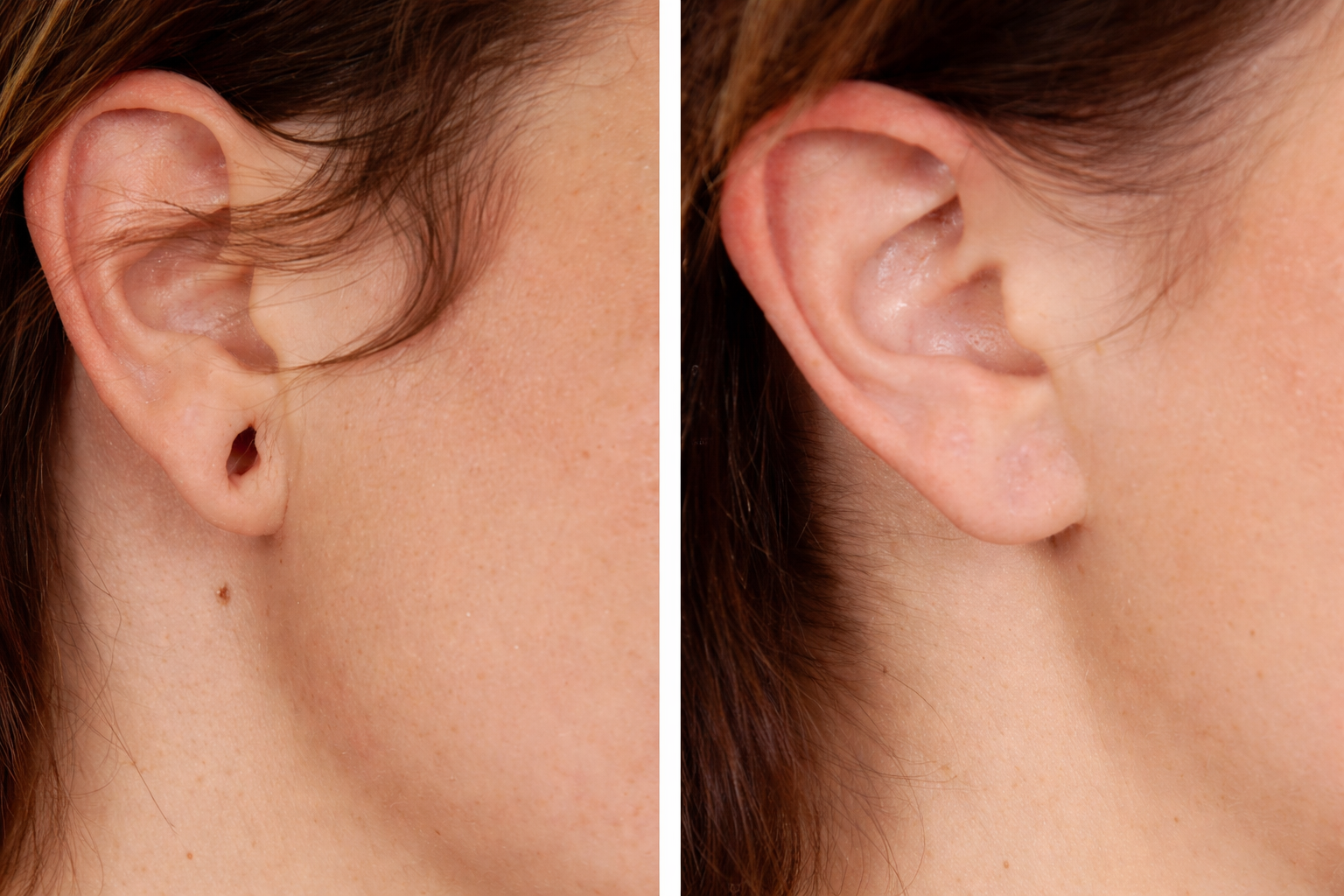 É um procedimento simples e ambulatorial, realizada , que dura entre 30 a 60 minutos para reconstruir o lóbulo da orelha rasgado, alargado ou deformado.